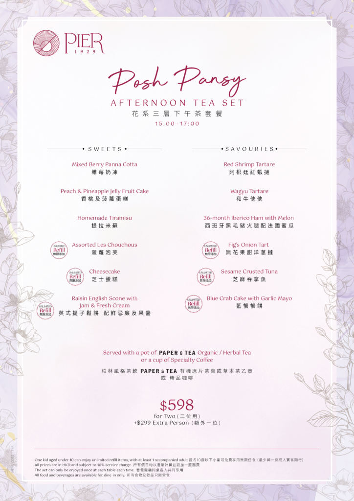 – All prices are in HKD, and subject to 10% service charge.